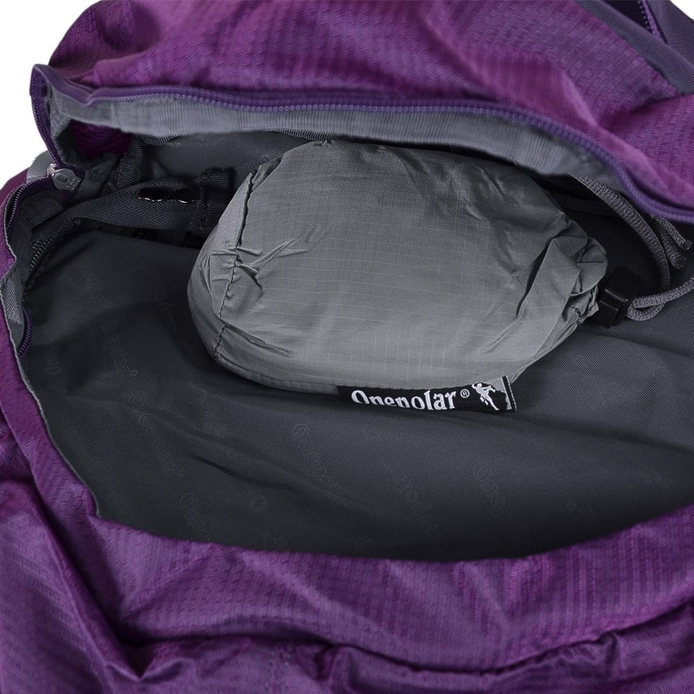 Количество отделов: 1 основной отдел, карманы для мелких предметов, документов и мобильного, снаружи на лицевой стороне карманы, по бокам карманы-сеточки, непромокаемый чехол от дождя, убираемый в специальный карман на молнии