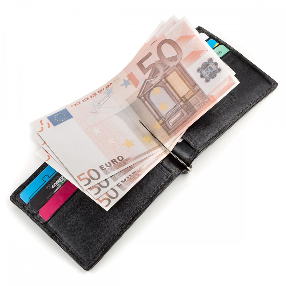 Количество отделов: 1 основное отделение. Внутри металлический зажим для купюр, 6 слотов для кредитных карт и 2 дополнительных кармана. Снаружи на лицевой и тыльной сторонах расположено по одному накладному открытому карману.