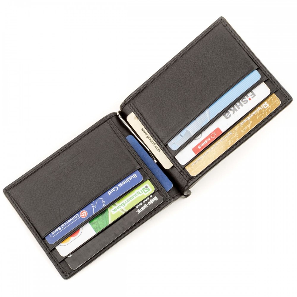 Количество отделов: 1 основное отделение. Внутри металлический зажим для купюр, 6 слотов для кредитных карт и 2 дополнительных кармана. Снаружи на лицевой и тыльной сторонах расположено по одному накладному открытому карману.