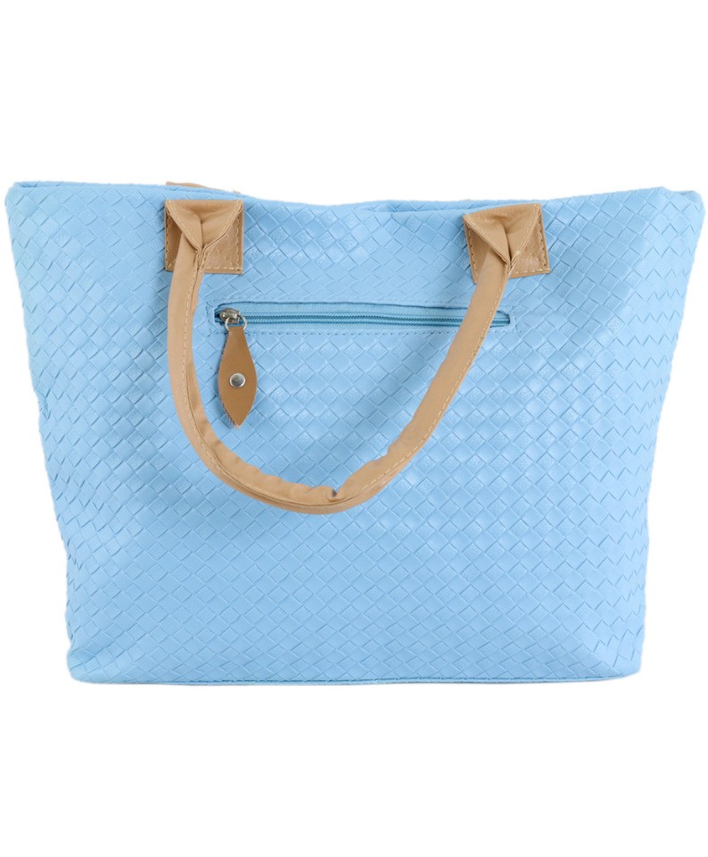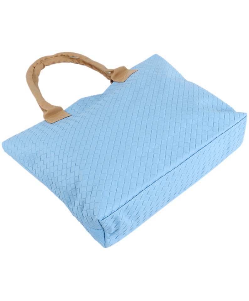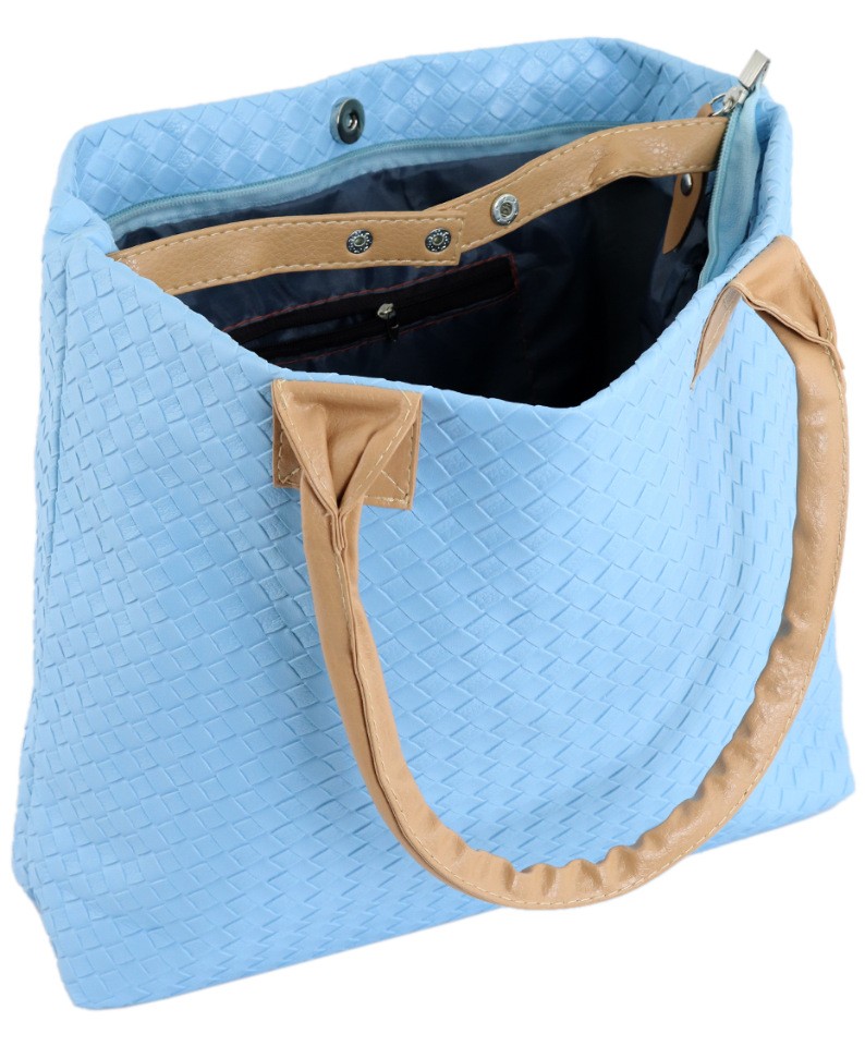 Сумка-шоппер с тиснением- имитация плетения. Закрывается на молнию и кнопку-магнит, внутри- 1 кармашек. С тыльной стороны- карман на молнии. Ручки средней длины.