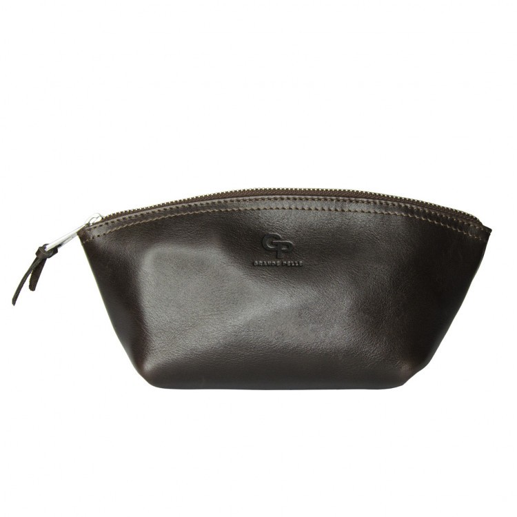 Женская кожаная косметичка Grande Pelle 805620 глянцевая кожа шоколад