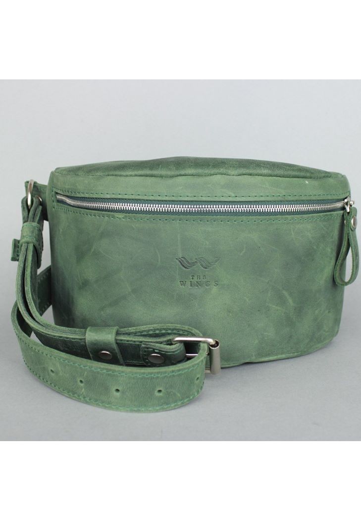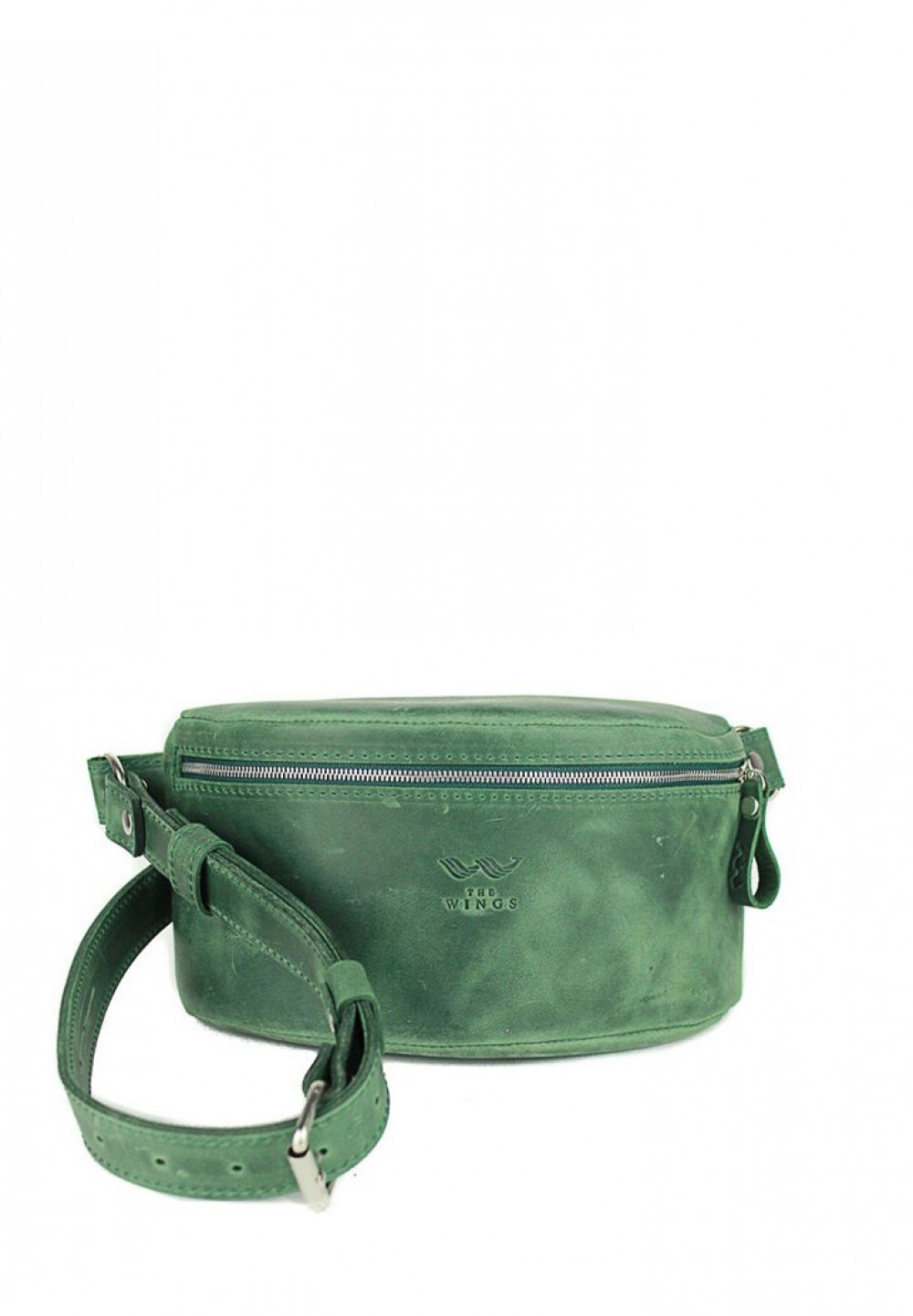 Женская кожаная поясная сумка зеленая винтажная TW-BELTBAG-GREEN-CRZ