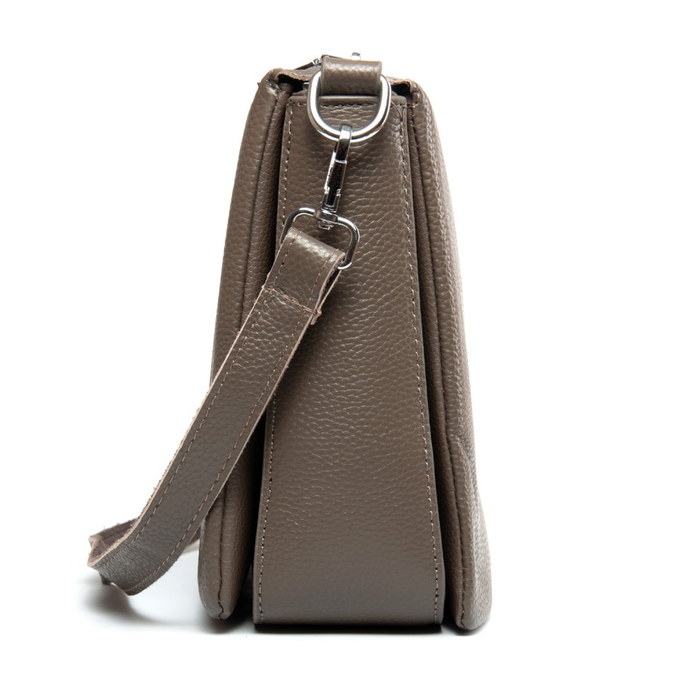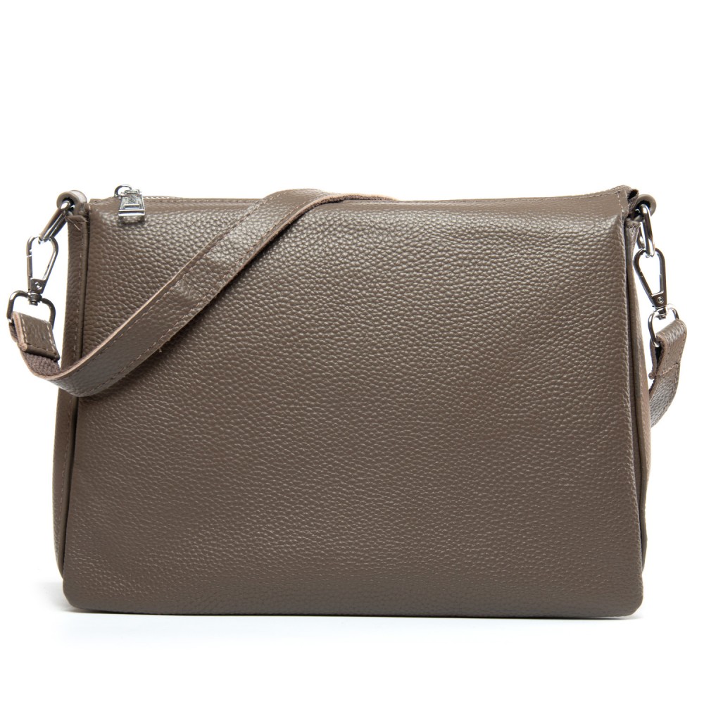 Количество отделов: Внутри находятся три отделения разделенные карманом-перегородкой. Среднее отделение дополнительно закрывается на молнию и внутри находится боковой открытый карман и карман на молнии. Снаружи сумки на обратной стороне расположен карман на молнии.