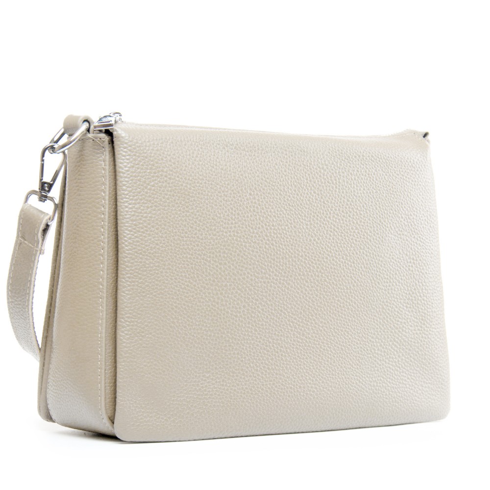 Количество отделов: З отделения разделенные карманом-перегородкой. Среднее отделение дополнительно закрывается на молнию и внутри находится боковой открытый карман и карман на молнии. Снаружи сумки на обратной стороне расположен карман на молнии.
