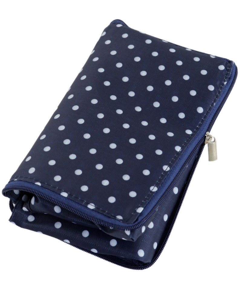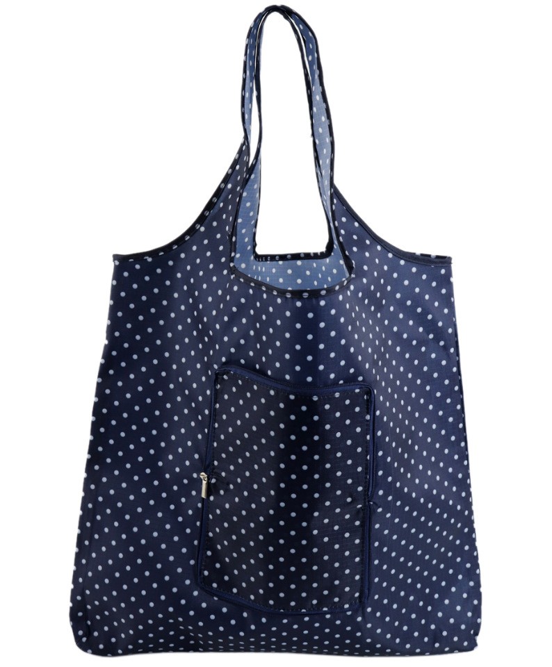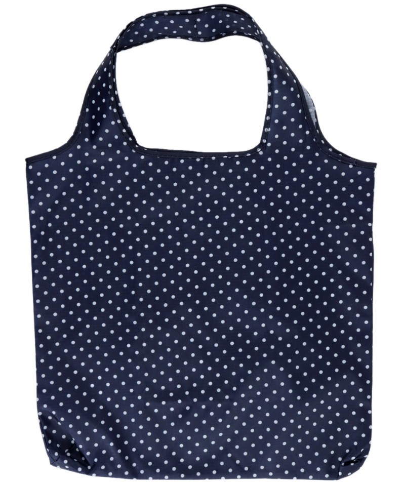 Складная сумка из плотного нейлона темно-синего цвета в мелкий горошек.