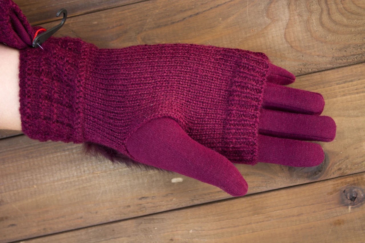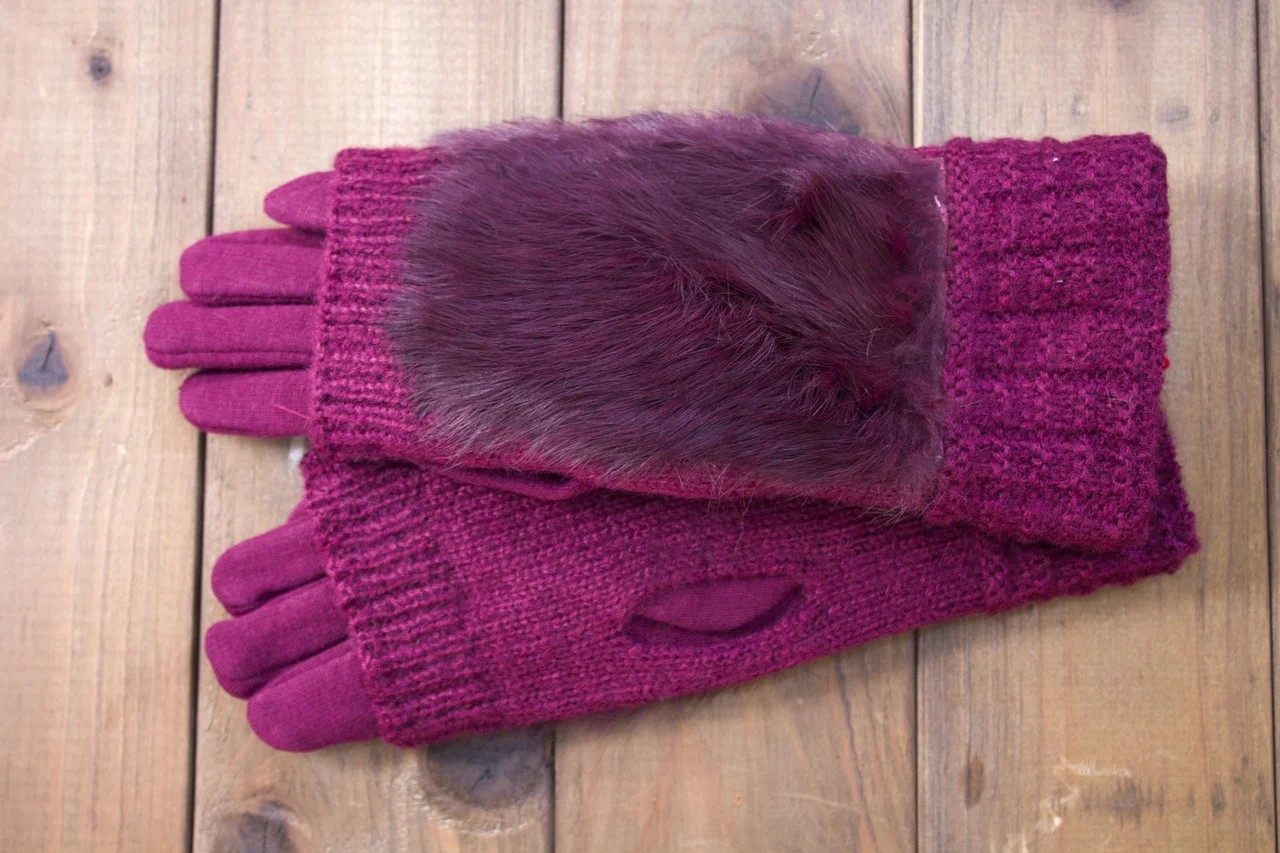 Женские перчатки комбинированные стрейч+вязка бордовые 1973s1 S
