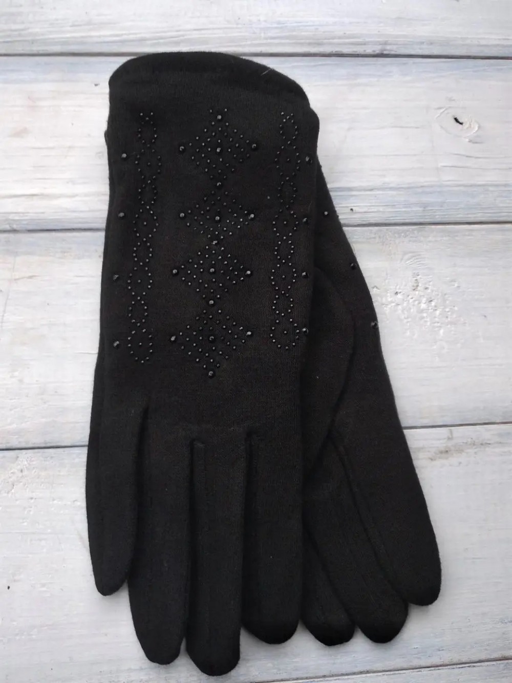 Женские стрейчевые перчатки чёрные 8715s1 S