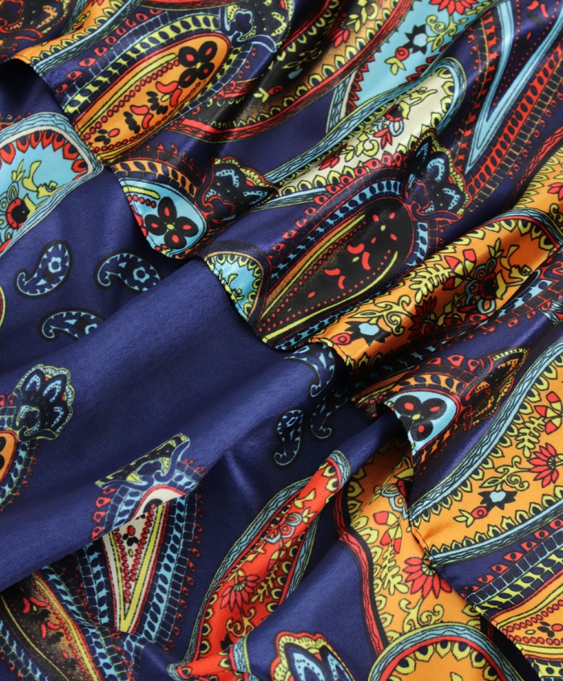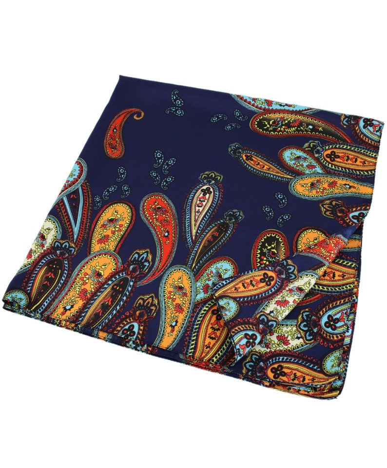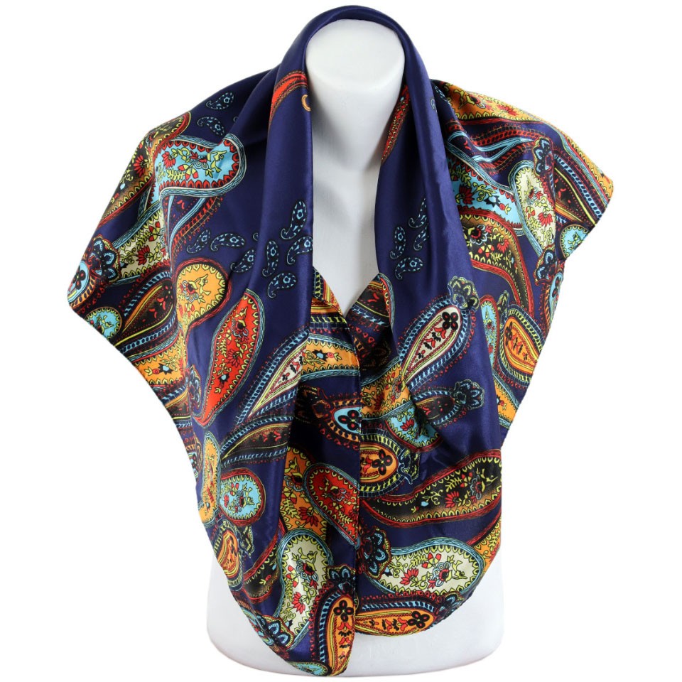 Атласный платок тёмно-синего цвета с рисунком "турецкий огурец".