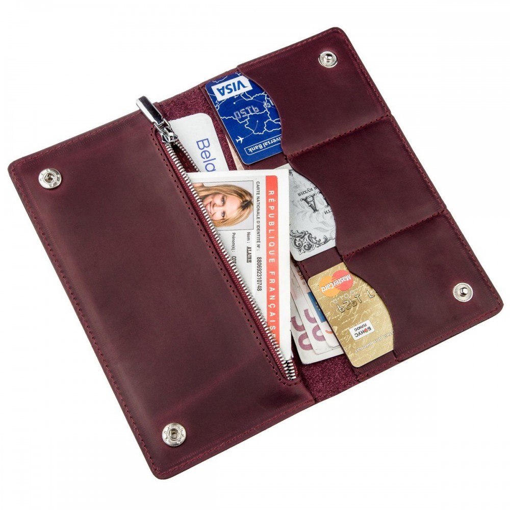 Количество отделов: 2 отделения для купюр; 3 слота для карточек; карман на молнии