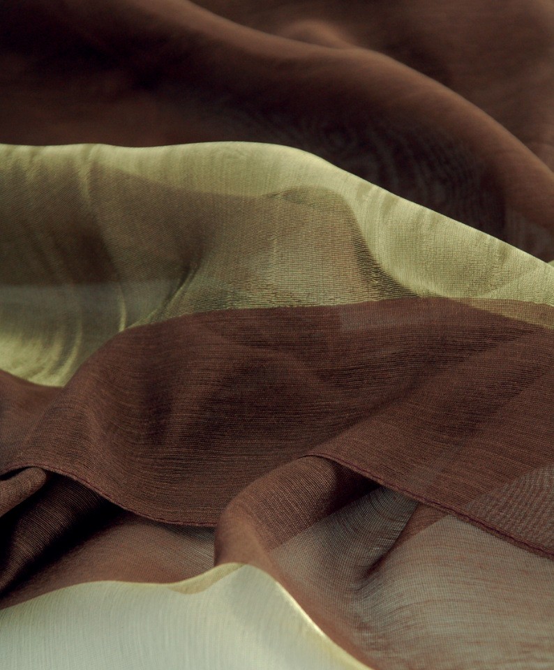Легкий шелковый шарф с широкой полупрозрачной полосой, коричневого цвета