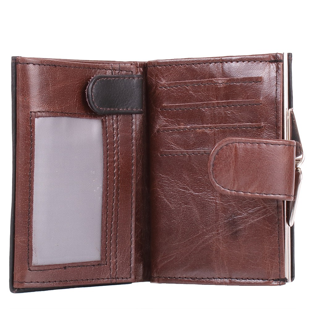 - Количество отделов: 2 кармана для купюр. Карманы для фотокарточек, пропусков, проездных билетов и других документов: 3 (имеет прозрачное окошко). 11 отделов для кредитных карт. Карман для мелочи на застежке-рамке, 1 дополнительный отдел.