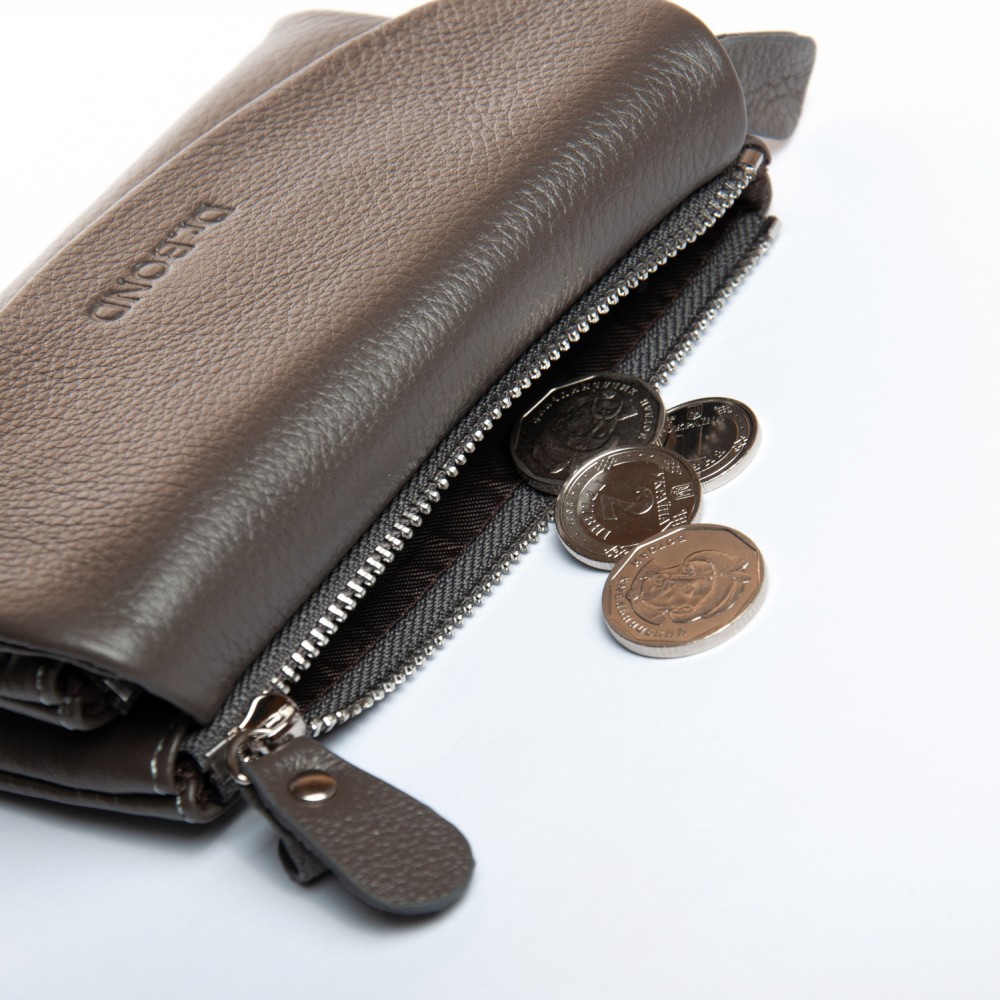 Внутри находятся одно большое открытое отделение для банкнот, 7 карманов для визитных карт и 4 больших открытых кармана. На торцах кошелька расположены вместительные карманы на молнии.