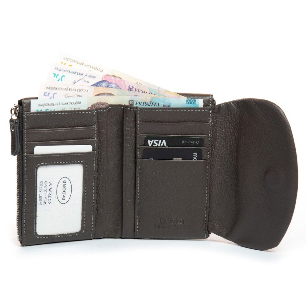 Женский кожаный кошелек Bright DR. BOND WS-239 gray