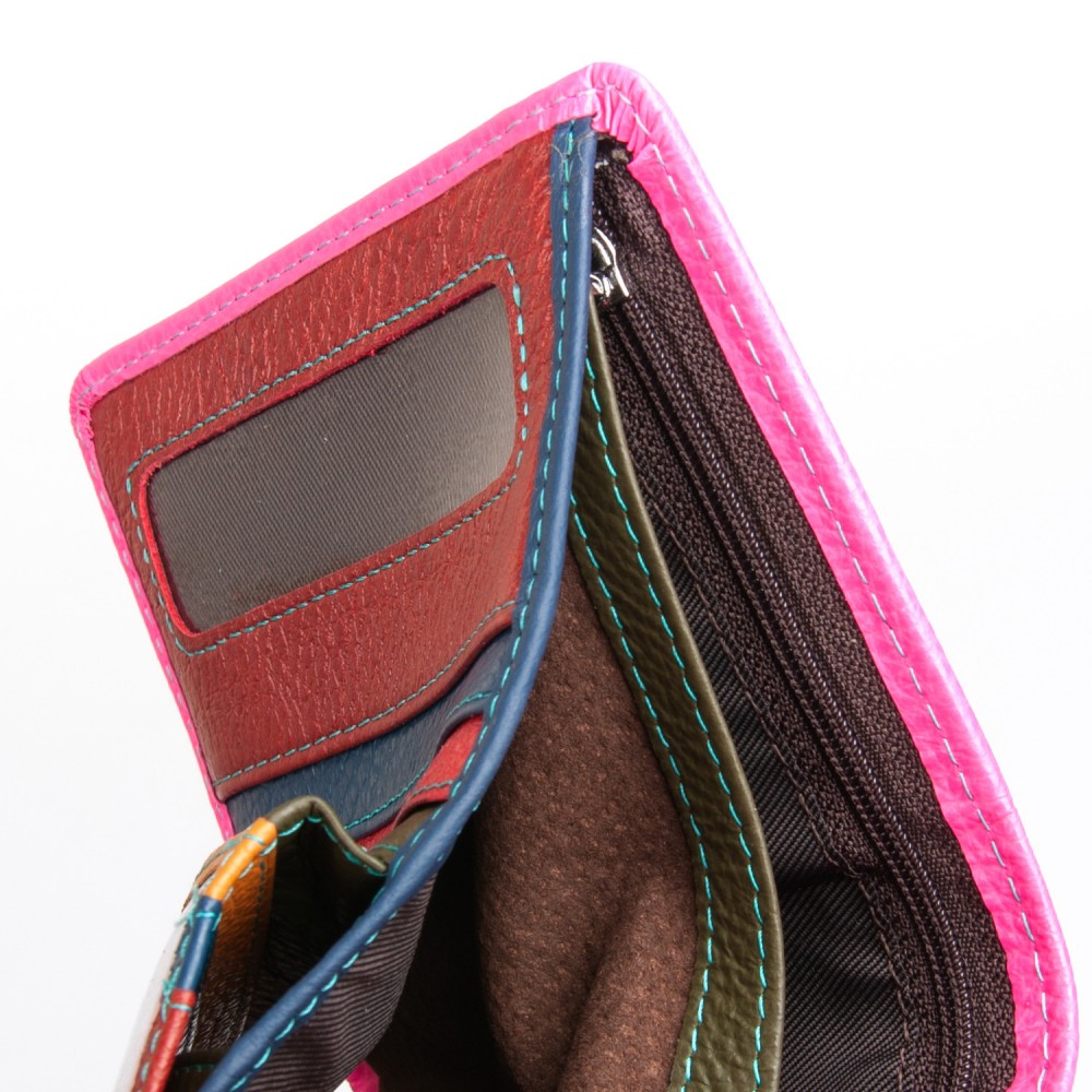 Количество отделений: 2 открытых отделения для банкнот, разделенные кожаной перегородкой и одно отделение на молнии, 12 карманов для визитных карт. Снаружи кошелька на обратной стороне расположен карман-монетница на кнопке.