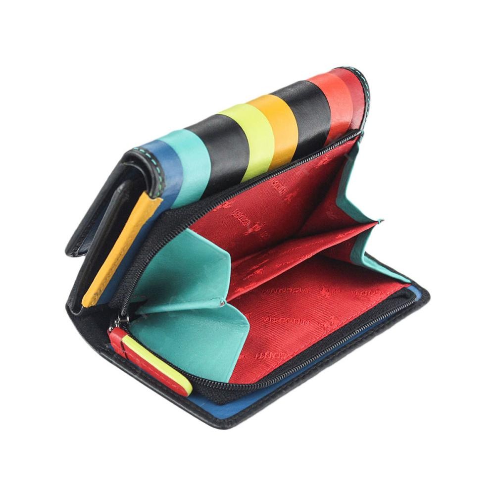 Количество отделов: один основной отдел для купюр, прозрачное окошко для фото или водительских прав, шесть слотов для визиток, три скрытых отдела и монетница на молнии