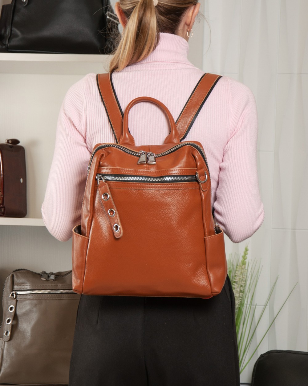 Женский кожаный рюкзак ALEX RAI 8781-9 camel
