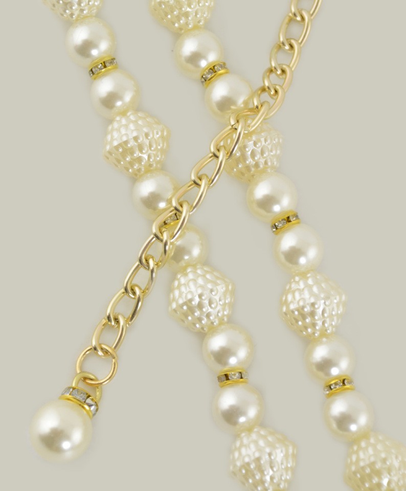 Полностью декорирован пластиковыми бусинами-жемчужинами разной формы
